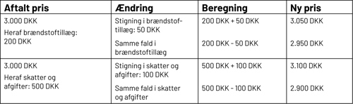 Beregningen af disse ændringer foretages efter nedenstående regneeksempler: